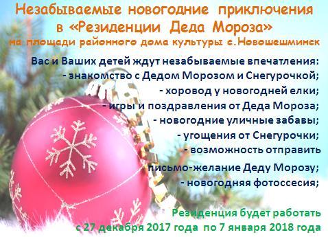 Незабываемые новогодние приключения в «Резиденции Деда Мороза» на площади районного дома культуры с.Новошешминск