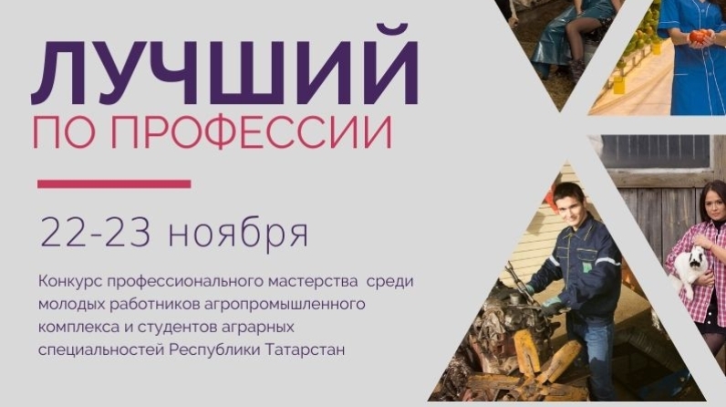 С 22 по 23 ноября в рамках реализации подпрограммы «Сельская молодежь Республики Татарстан на 2014-2020 годы» пройдет конкурс профессионального мастерства «Лучший по профессии» среди молодых работников агропромышленного комплекса Республики Татарстан. Организаторами конкурса выступают региональная общественная организация «Аграрное молодежное объединение Республики Татарстан», Министерство сельского хозяйства и продовольствия Республики Татарстан и Министерство по делам молодёжи Республики Татарстан.