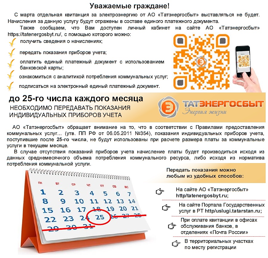 С марта отдельная квитанция за электроэнергию от АО "Татэнергосбыт" выставляться не будет.