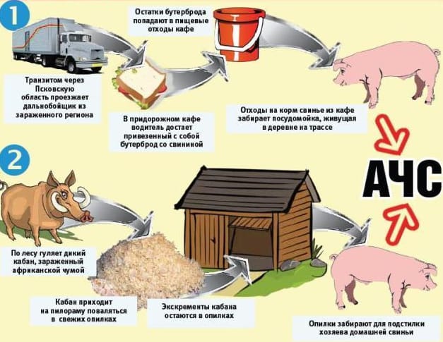 Инкубационный период от тяжести течения может продолжаться от 2 до 6 суток. Для человека африканская чума свиней опасности не представляет, но люди могут быть переносчиками инфекции.