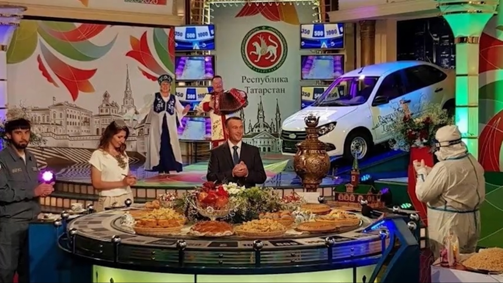 В честь праздничной даты студию украсили татарстанской национальной символикой с изображением главных достопримечательностей Казани - мечети Кул Шариф и башни Сююмбике. Также повесили тематические баннеры «ТАССР 1920−2020», а барабан гости заполнили татарскими национальными блюдами и подарками.