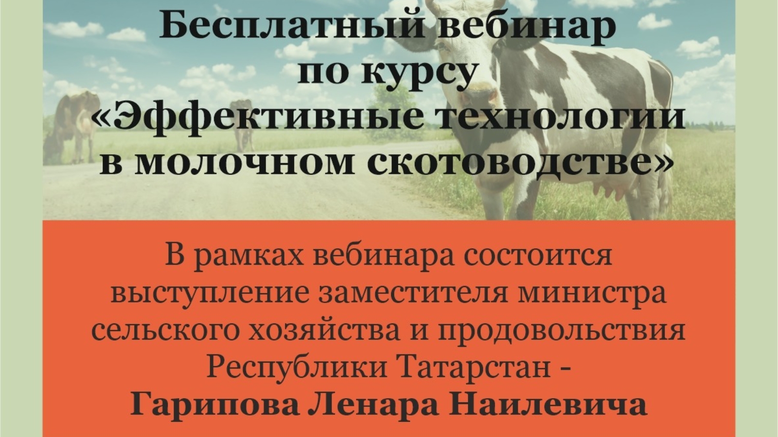 Минсельхозпрод РТ информирует, что 22 октября в 14:00 на единой образовательной платформе «Агрополия» состоится очередной бесплатный вебинар, который будет посвящён эффективным технологиям в молочном скотоводстве.