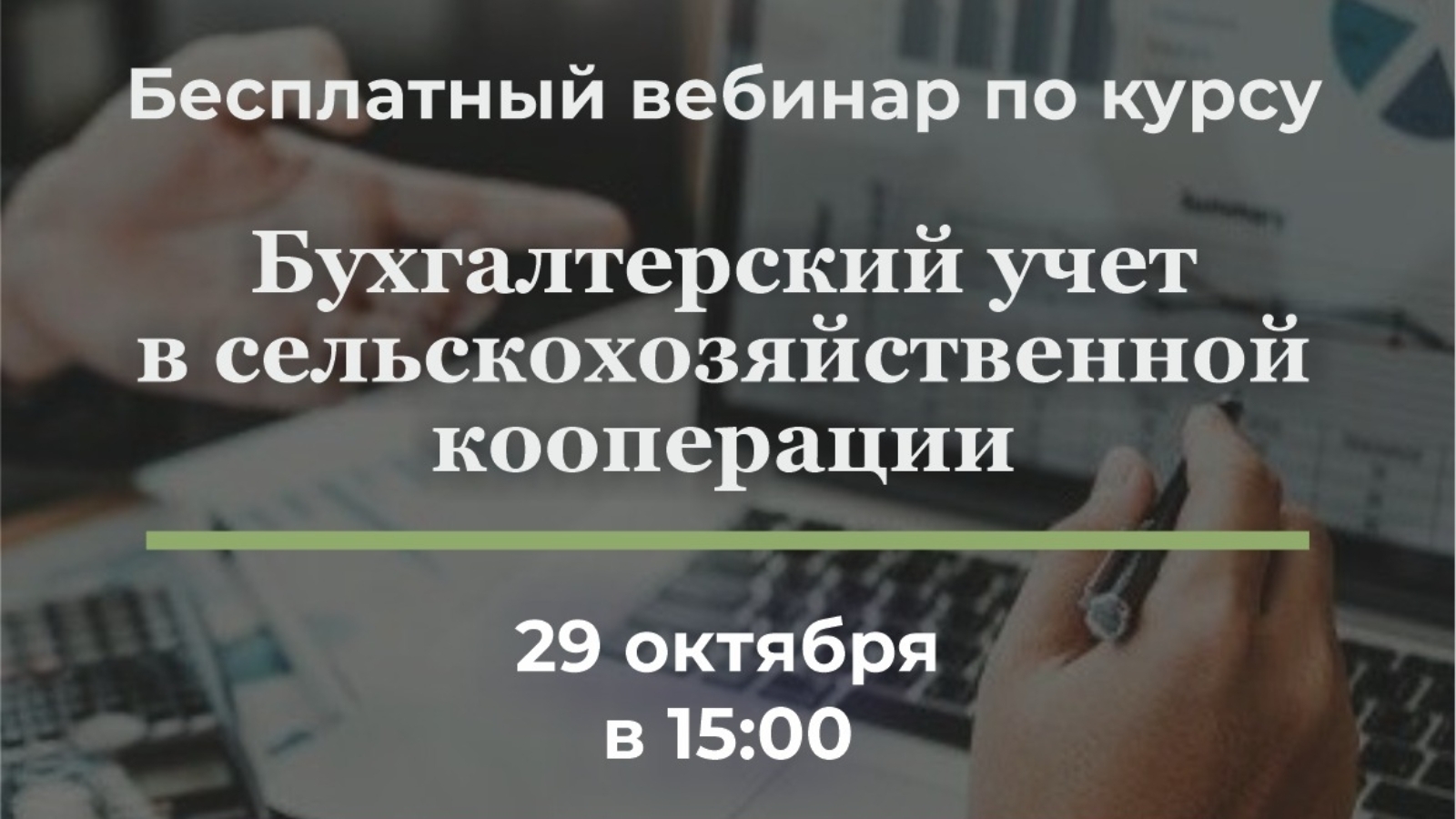 Минсельхозпрод РТ информирует, что 29 октября в 15:00 на единой образовательной платформе «Агрополия» состоится очередной бесплатный вебинар, по курсу «Бухгалтерский учет в сельскохозяйственной кооперации».
