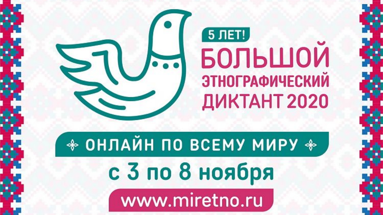 С 3 по 8 ноября 2020 года пройдёт Международная просветительская акция "Большой этнографический диктант". В этом году диктант будет проведён в онлайн-формате.