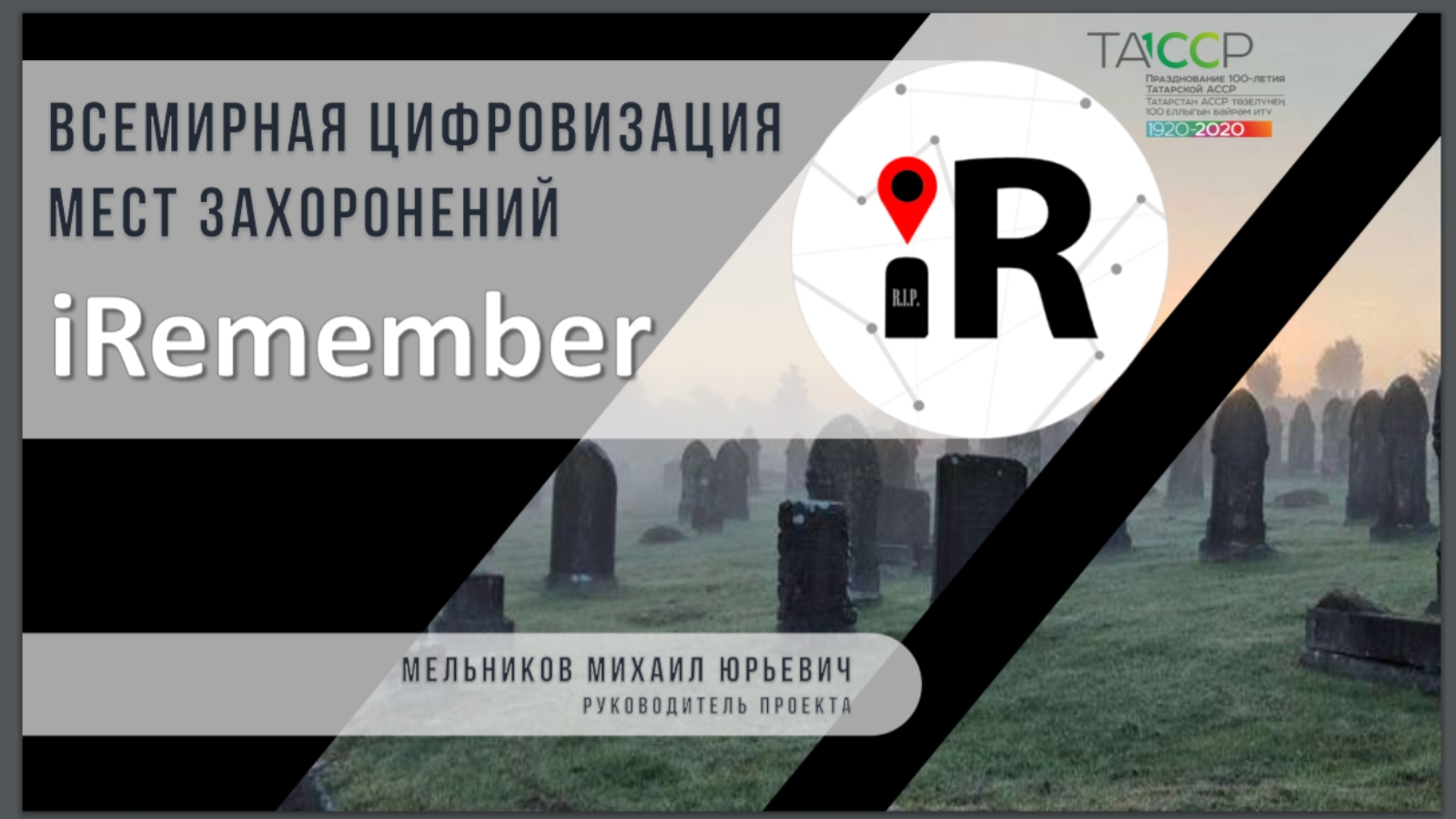 iRemember – это международный цифровой ресурс предназначенный для создания глобальной базы данных об умерших людях, местах и территории их захоронений для сохранения истории о человеке работавшем на благо Республики Татарстан, России и Мира в целом.