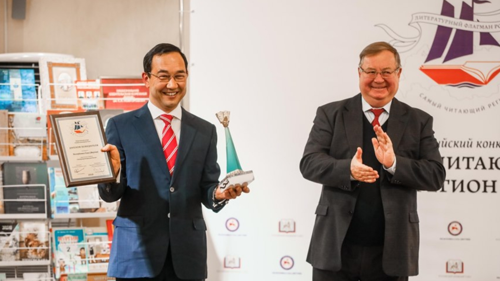 Кульминацией церемонии стало чествование победителя конкурса «Самый читающий регион». В этом году статуса «Литературный флагман России» удостоена Республика Саха (Якутия). Это событие проходило в необычном формате: делегация Российского книжного союза во главе с президентом РКС Сергеем Степашиным отправилась в Якутск, где и прошло торжественное награждение с участием Главы Республики Айсена Николаева. Вручая почетные награды конкурса — статуэтку, диплом и сертификат на пополнение библиотечных фондов — Сергей Степашин отметил, что Якутия в полной мере оправдывает свой статус, отвечая запросам времени. «И в этот год, год Победы советского народа в Великой Отечественной войне, Якутия отличилась проведением огромного количества замечательных мероприятий», — напомнил он.