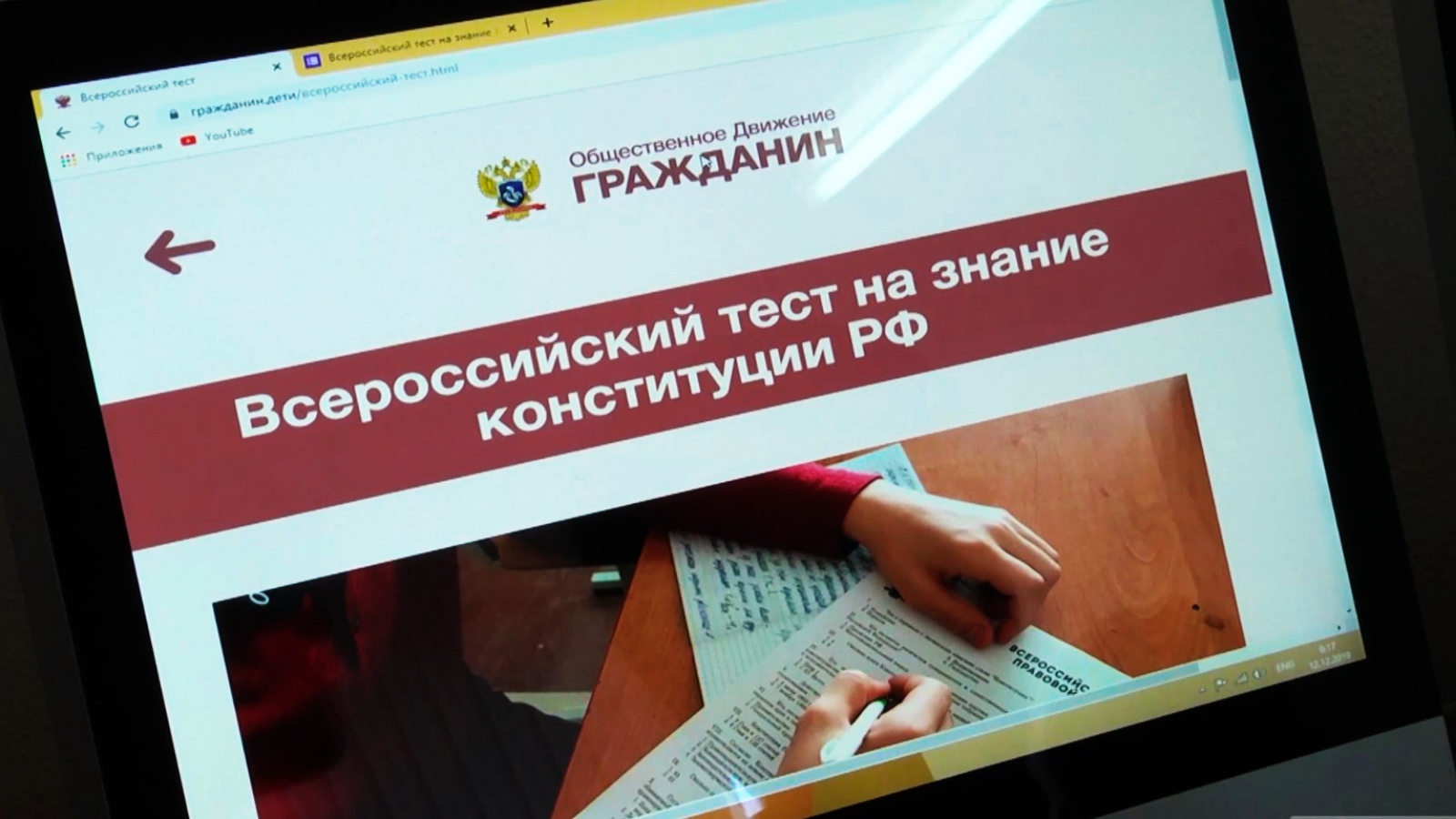 Ежегодно 12 декабря Общественное движение «Гражданин» проводит «Всероссийский тест на знание Конституции Российской Федерации». В 2020 году Всероссийский тест на знание Конституции РФ пройдёт в форме добровольного электронного теста для лиц старше 12 лет в двух форматах: на официальных площадках и на платформе «Гражданин» в онлайн-формате.