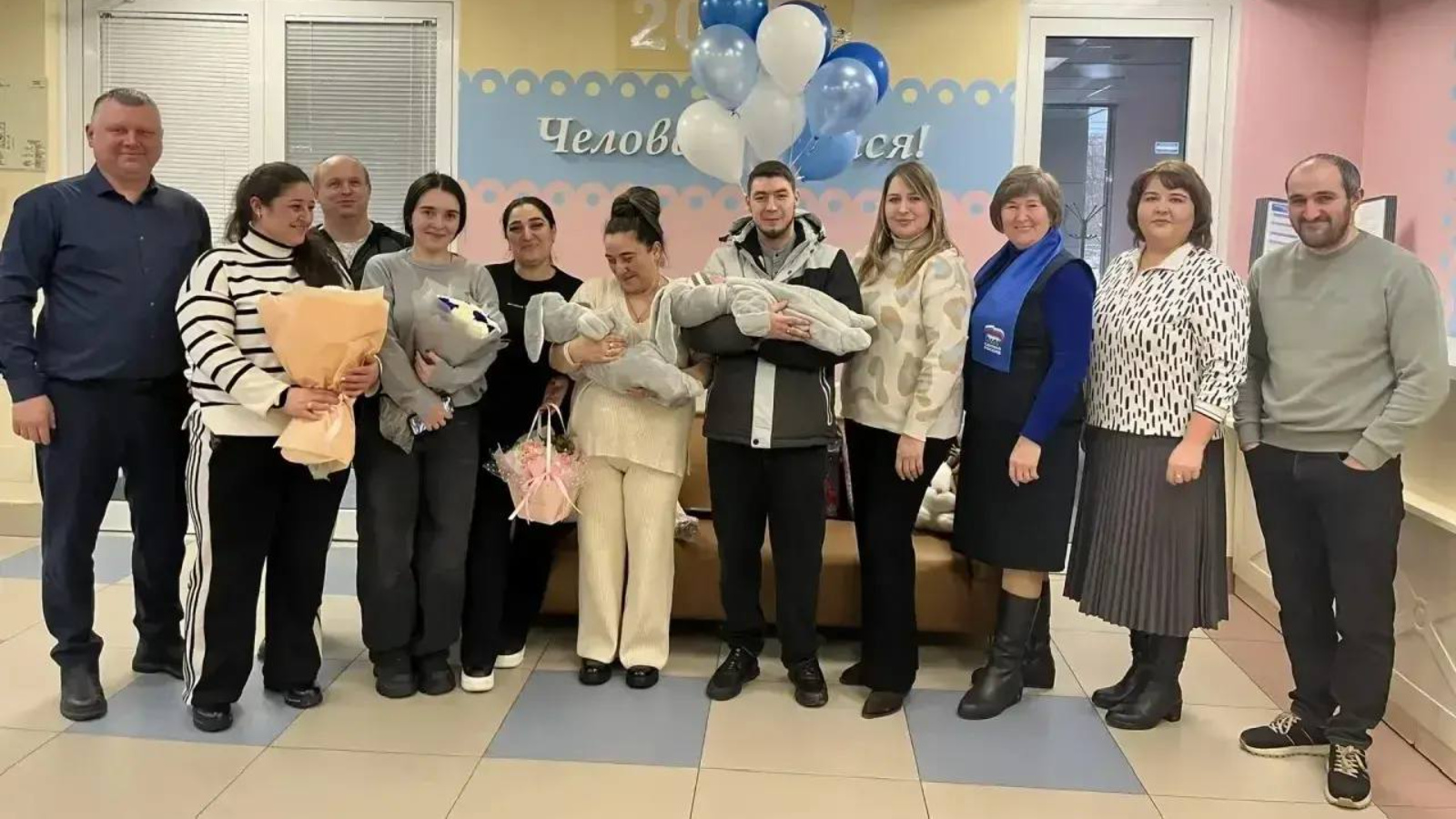 Сегодня, в день выписки из роддома, молодых родителей пришли поддержать и поздравить родные, а также представители администрации района.