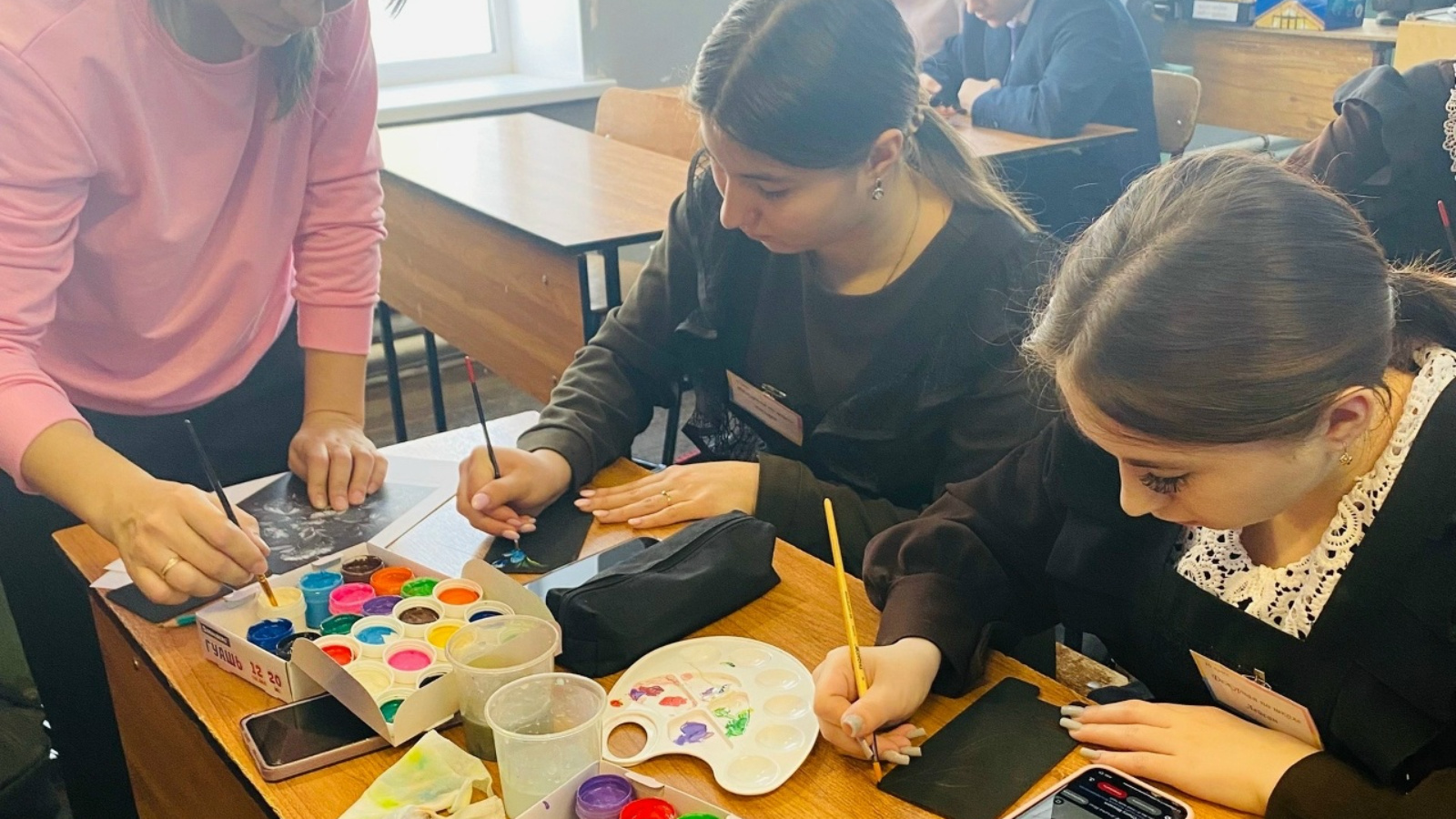 📍В Ленинской школе прошел яркий мастер-класс по росписи аксессуаров. Мероприятие состоялось благодаря программе «Пушкинская карта» в рамках национального проекта «Семья».