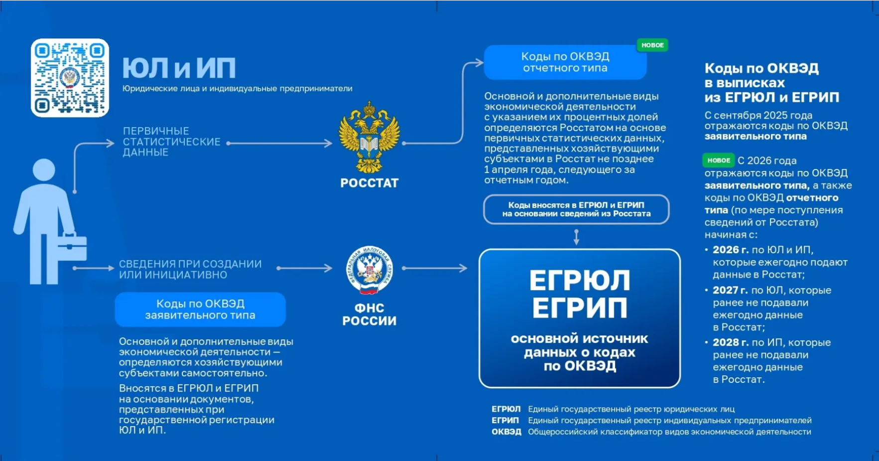 ❗Начиная с 2026 года Росстат будет ежегодно направлять в ФНС России сведения об отчетных кодах ОКВЭД в срок до 10 апреля.