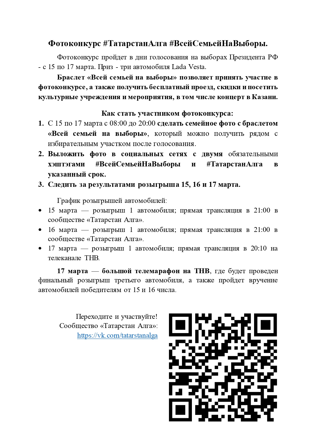 Предложения принимаются в рабочие дни с 08.00 до 16.30 часов со дня обнародования на официальном портале правовой информации Республики Татарстан в информационно – телекоммуникационной сети «Интернет» по электронному адресу: http: //pravo.tatarstan.ru.