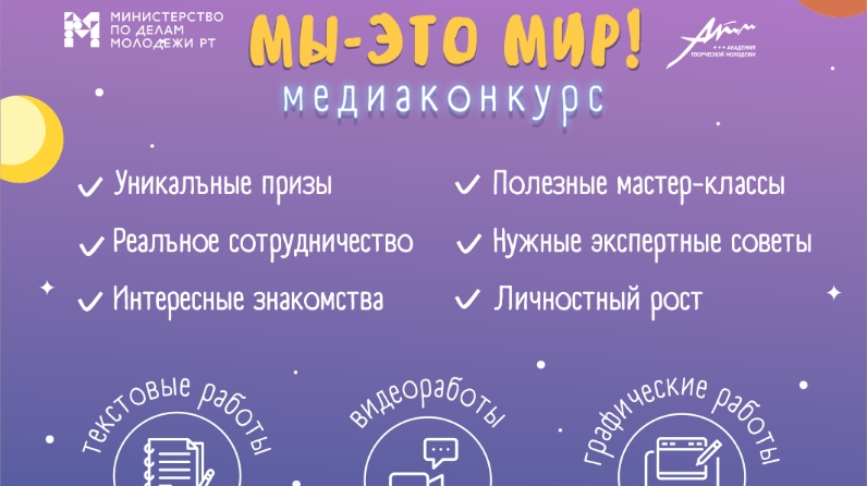 Татарстан Республикасы Яшьләр эшләре һәм спорт министрлыгы, «Татарстан Республикасы Иҗади яшьләр академиясе» төбәк иҗтимагый оешмасы белән берлектә, Татарстан Республикасында Террорчылыкка каршы комиссия аппараты ярдәмендә, 2020 елның 1 июненнән 1 сентябренә кадәр «без – дөнья!».