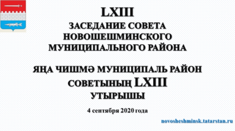2020 елның 4 сентябрендә сәгать 10.00 Яңа Чишмә муниципаль районы Советының зур залында Яңа Чишмә авылы, Совет урамы, 80 нче йорт адресы буенча Яңа Чишмә муниципаль районы Советының чираттагы алтмыш өченче утырышы узачак. Көн тәртибендә 6 мәсьәлә каралачак. Көн тәртибе белән тулырак Яңа Чишмә муниципаль районының рәсми сайтында танышырга мөмкин http://novosheshminsk.tatarstan.ru/rus/proekti-dokumentov.htm "документлар проектлары" бүлекчәсендә, "документлар"бүлегендә. Татарстан Республикасының Яңа Чишмә муниципаль районы Советы депутатларын район Советының планлы утырышында катнашырга чакырабыз.