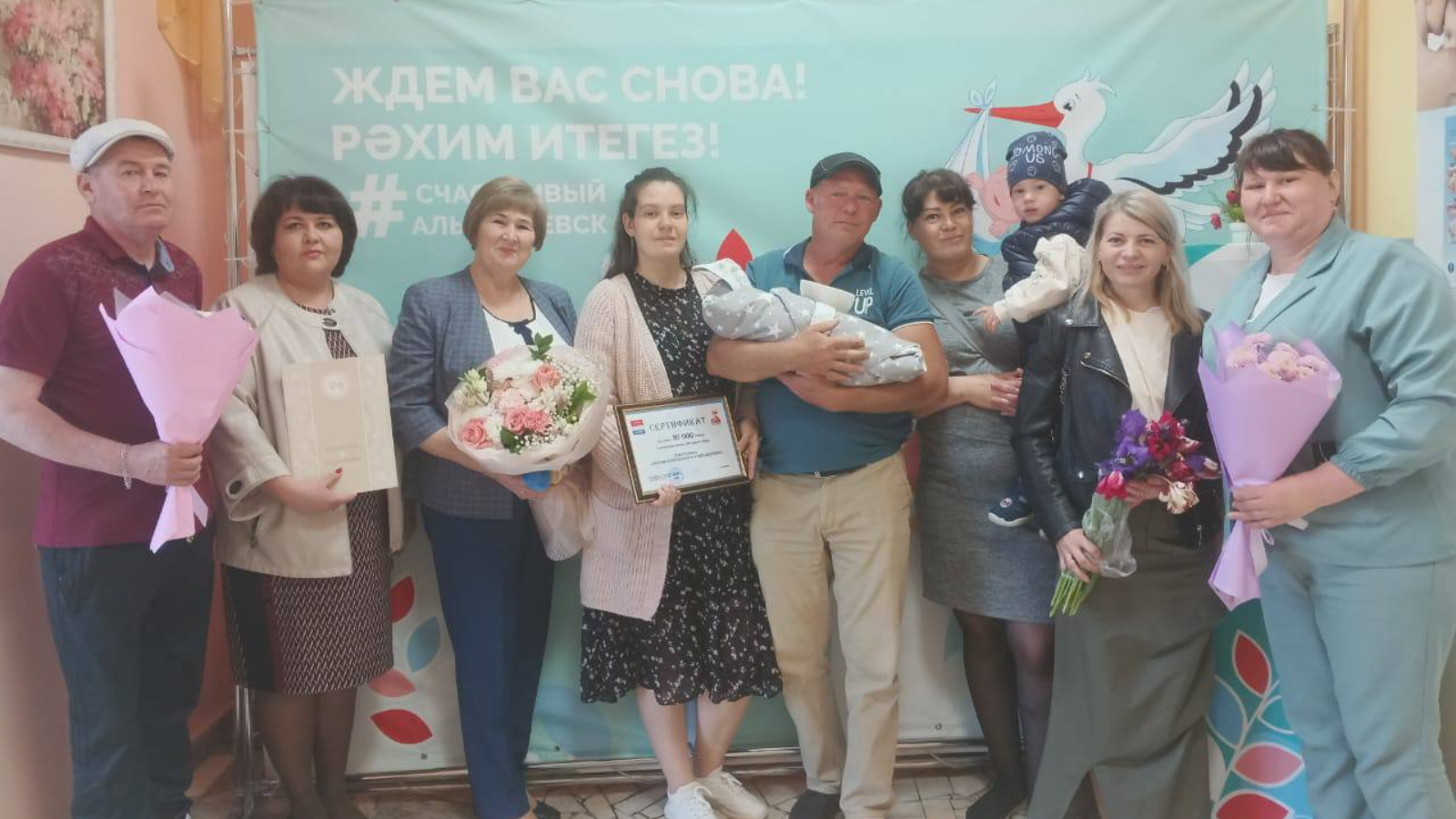 Сабыйның беренче рәсми документын тапшыру тантаналы мизгелгә өстәде. Район ЗАГС җитәкчесе Алия Мирьякупова Юлиягә улы Яниславның туу турындагы таныклыгын тапшырды.
