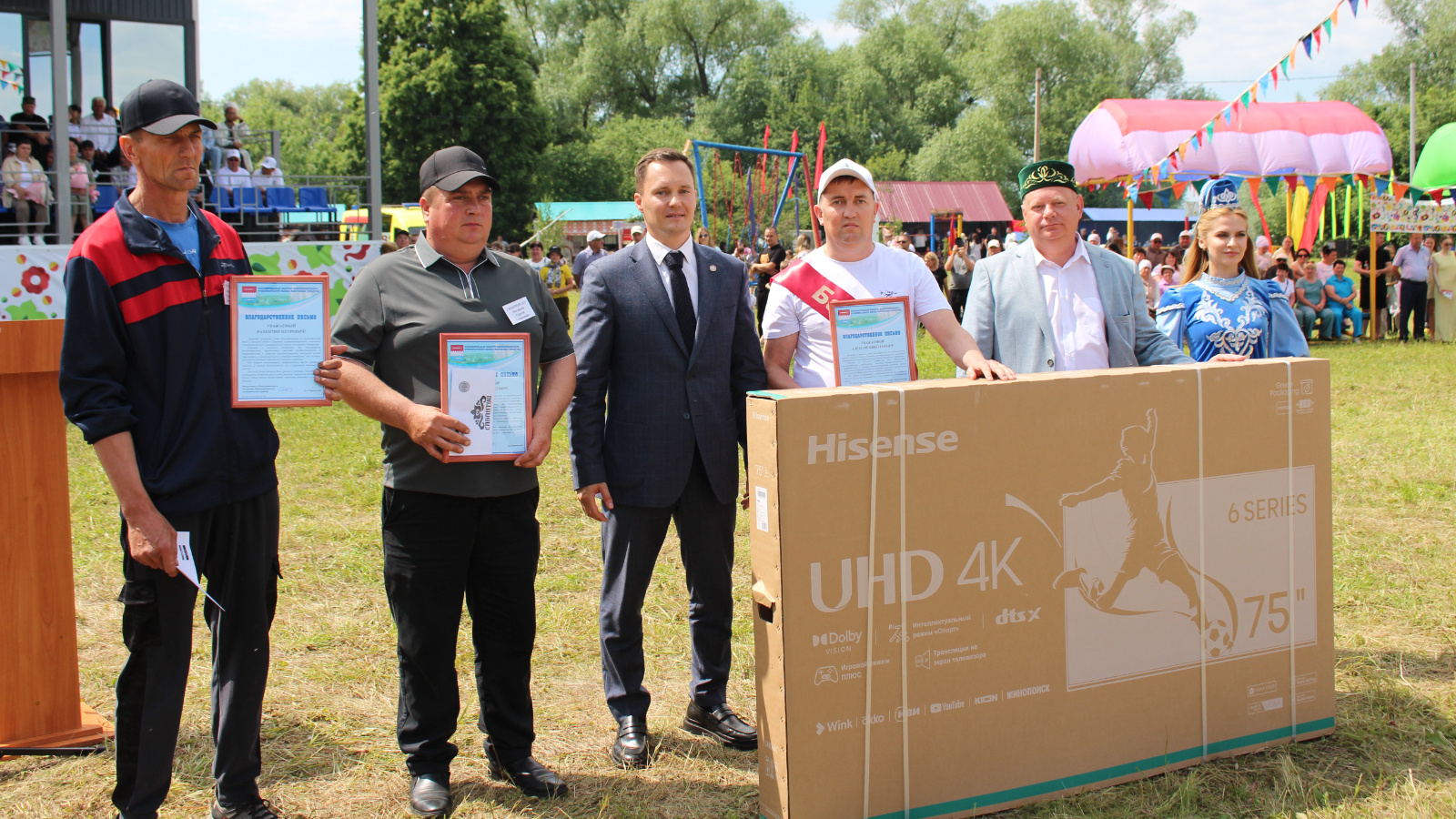 Сабантуй якты хезмәт бәйрәменә әверелде, анда батырны гына түгел, районыбызның барлык авыл хуҗалыгы алдынгыларын да хөрмәтләделәр.:
