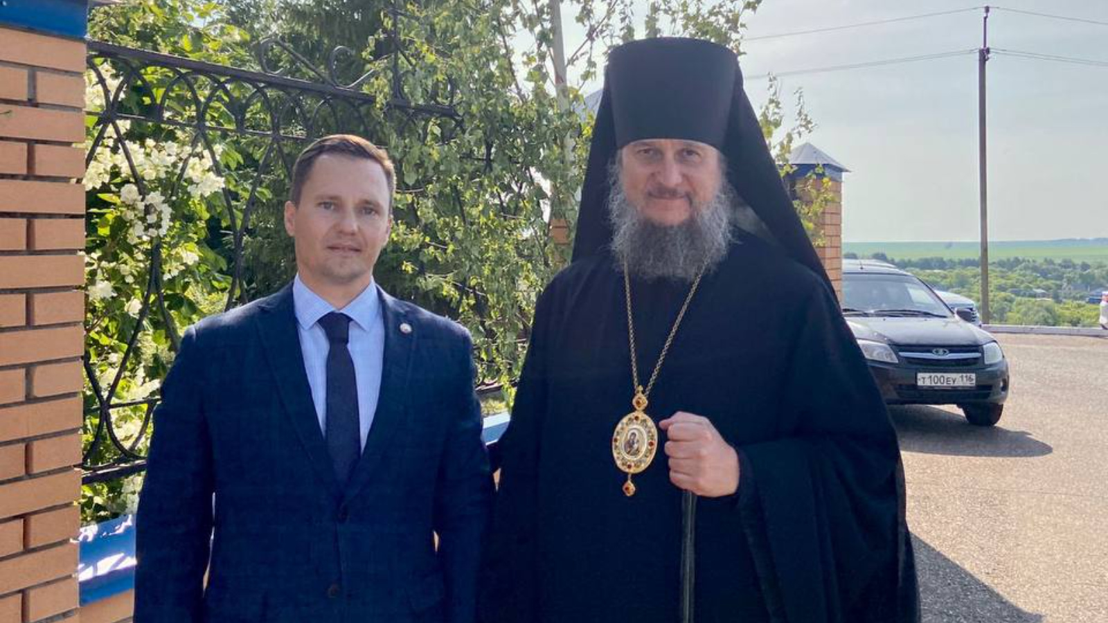 Гыйбадәт кылу алдыннан владыка Пахомияне Яңа Чишмә районы Башкарма комитеты җитәкчесе Егор Тарнавский җылы сәламләде. Кыскача сөйләшү булды, аның барышында епархия һәм район администрациясе арасында киләчәк хезмәттәшлек перспективалары турында фикер алыштылар.