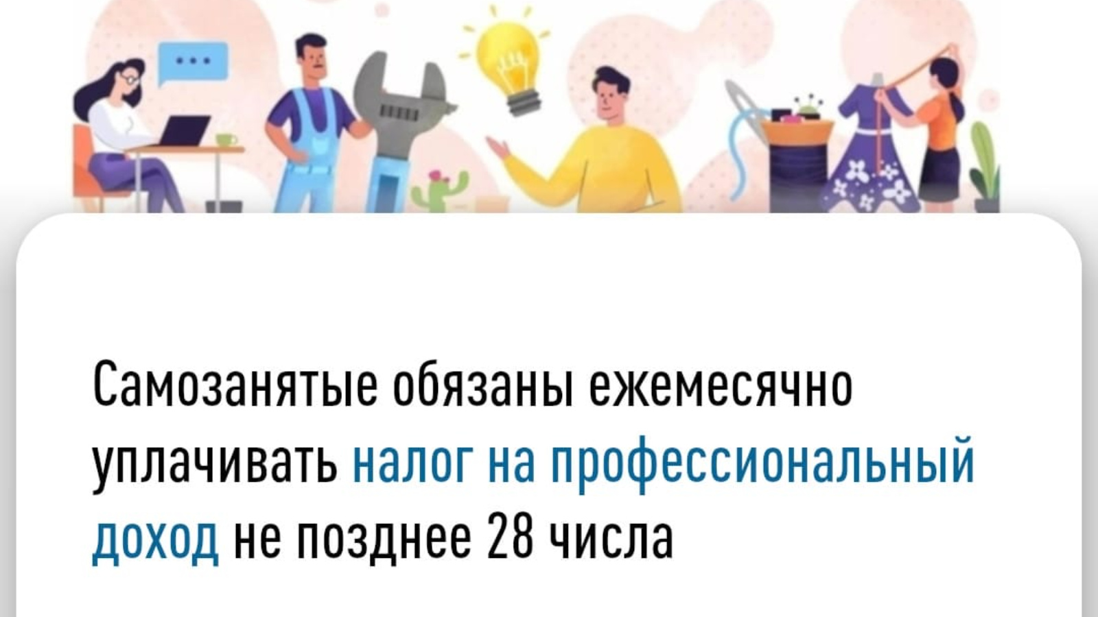 НПД өчен түләү ай саен башкарыла - үткән салым чорыннан соң килә торган айның 28 нче числосыннан да соңга калмыйча.