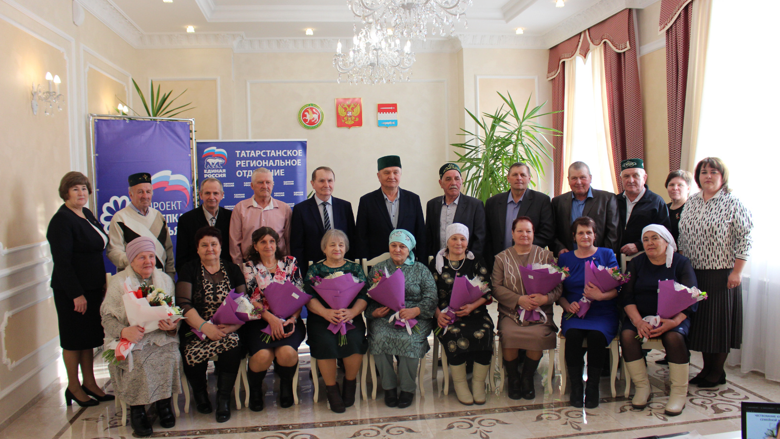 "Сезнең гаиләләр-районның горурлыгы. Сез бөтен хезмәт гомерегезне Яңа Чишмә җиренә багышладыгыз. Сез мәхәббәтегезне еллар аша җиткерә һәм балаларыгызны лаеклы тәрбияли алдыгыз. Сезгә нык сәламәтлек, иминлек һәм тагын да озын гомер телибез», — дип мөрәҗәгать итте Надежда Попкова җыелучыларга.